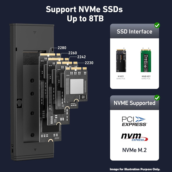 -Support four sizes(2230/2242/2260/2280) of M.2 (NVME) M-KEY solid state drives