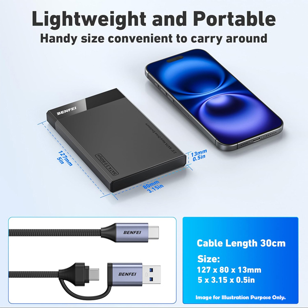 BENFEI USB-A / C 3.0 Male 2.5" SATA III HDD/SSD Enclosure With Supporting Accelerated UASP, S.M.A.R.T And TRIM Protocol And Ultra-Fast 6Gbps Transmission Speed - Black Colour