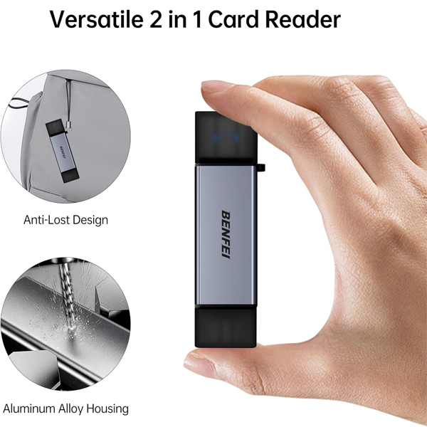 BENFEI USB-C And USB-A 3.0 Multi-Card Reader With OTG Function, Transfer Speed Up To 5Gbps And Built-In SD/TF Card Slots - Grey Colour