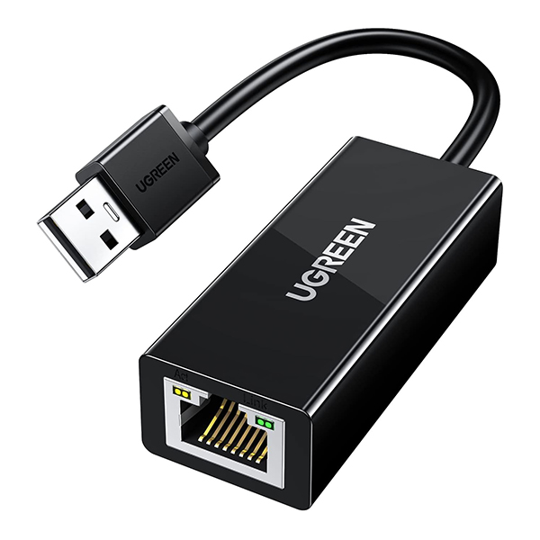 UGreen 20254 USB-A 2.0 Male To RJ45 Ethernet Female Adapter With Nickle-Plated Connectors And Supports Network Speed Up To 100Mbps - Black Colour