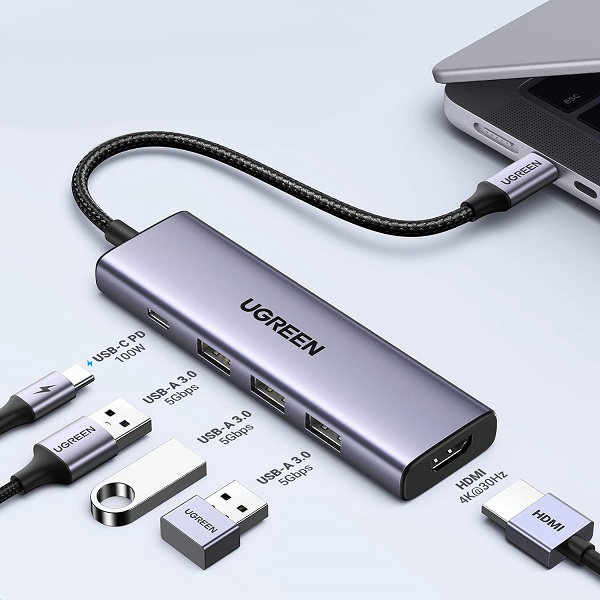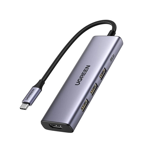 UGreen 15596 USB-C 5-In-1 Docking Station With 3x USB3.0 And HDMI 4K@30Hz And USB-C 100W (Max) Power Delivery - Grey Colour