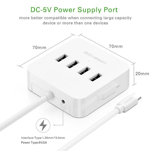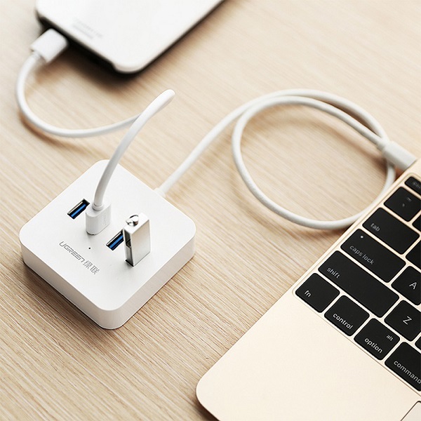 UGreen 30316 USB-C To USB-A 3.0 4-Port Hub with OTG Function And Supports Data Transfer Speed Up To 5Gbps - White Colour