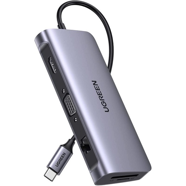 UGreen 80133 USB-C 10-In-1 Docking Station With HDMI/VGA/3x USB3.0/GLAN And SD/TF Slot And 3.5mm AUX And USB-C 100W(max) Power Delivery - Grey Colour