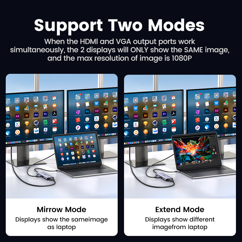 -Supports HDMI+VGA port simultaneously use