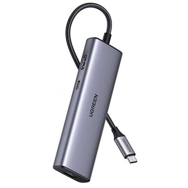 UGreen 90568 USB-C 7-In-1 Docking Station With 2X USB3.0, 1X HDMI 4K@30Hz, GLAN, SD/TF Card Slot And USB-C PowerDelivery 100W (Max) - Grey Colour