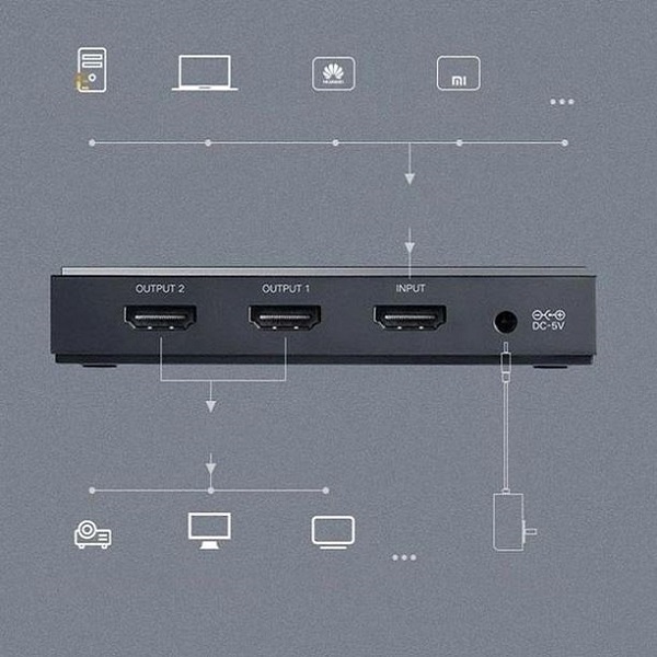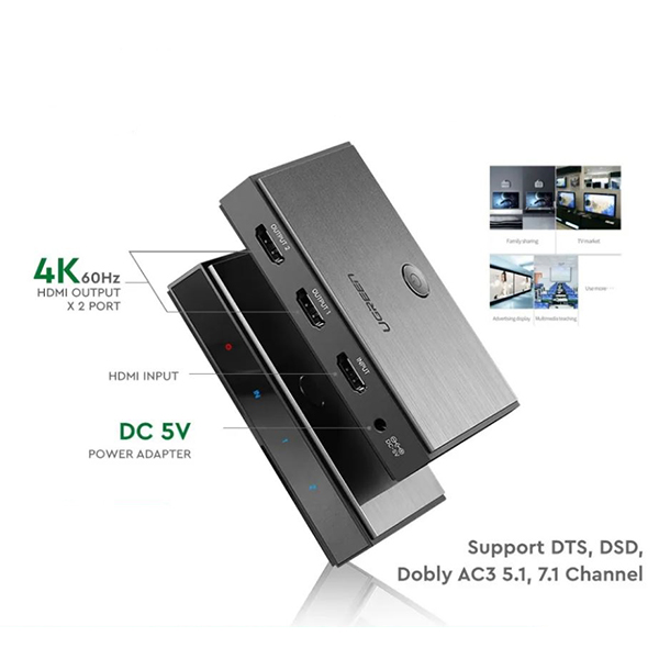 UGreen 50707 HDMI V2.0 1-In to 2-Out 2Port Amplified Splitter Supports 4K@60Hz Resolution, 18Gbps Bandwidth Speed And HDCP 2.2 - Black Colour