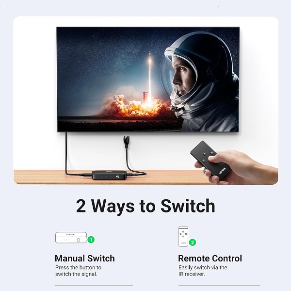 UGreen 80125 HDMI 3-In 1-Out 3Port Amplified Switch With IR Infrared Remote And Supports Resolution Up To 4K@30Hz - Black Colour