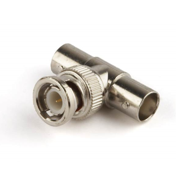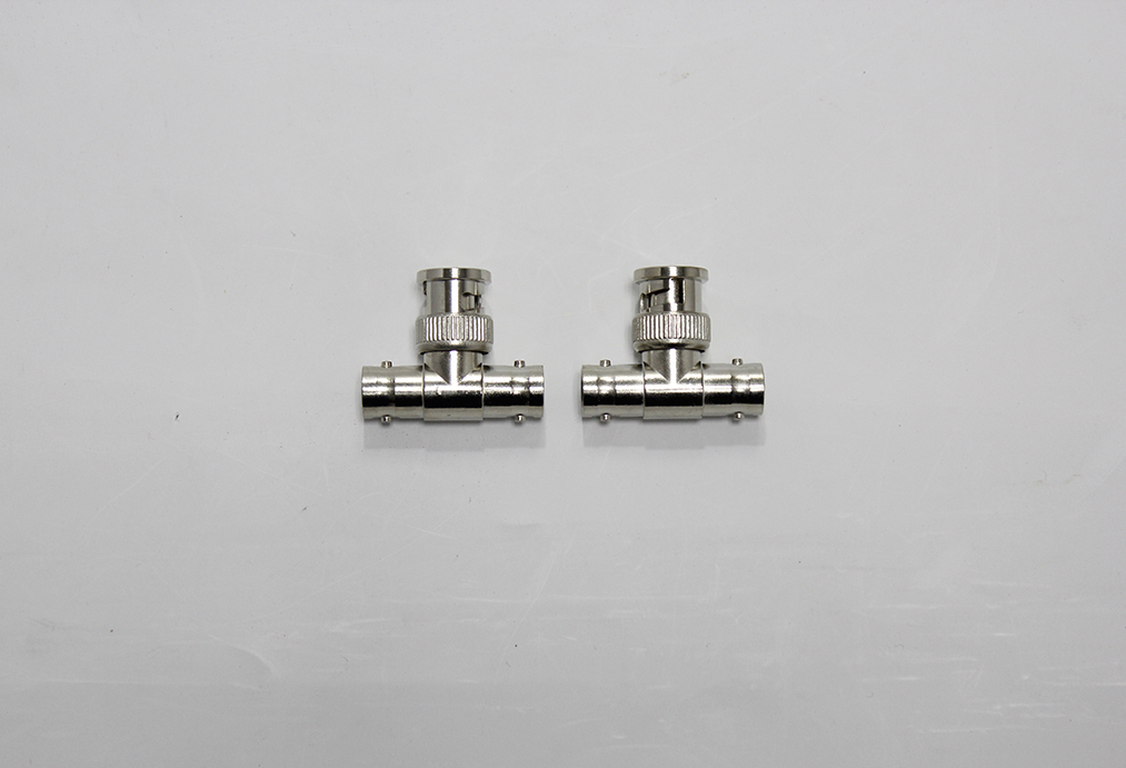 BNC 2FIMT-2, BNC MALE TO 2BNC FEMALE, T-shape BNC adapter, 1 BNC male to 2 BNC female, Full metal construction design, Suitable for 50/75 Ohm video connection.