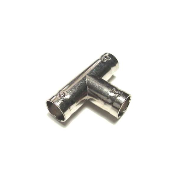 -This 50 Ohm BNC female 3 way T shape adapter allows routing of a signal from a common source to two different devices.