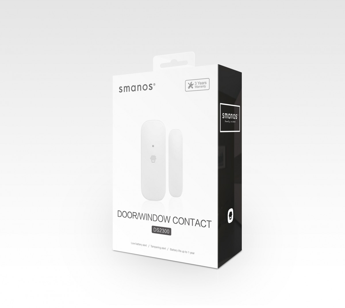 Smanos DS2300 Wireless Door And Window Contact Alarm With ABS Plastic Casing And LED Status Indicator And DC3V Power Supply - White Colour