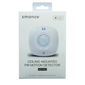 Smanos MD7000 Ceiling-Mount PIR Motion Detector WIth PC+ABS Plastic Casing, Test Button+Detection Lens+LED Indicator - White Colour